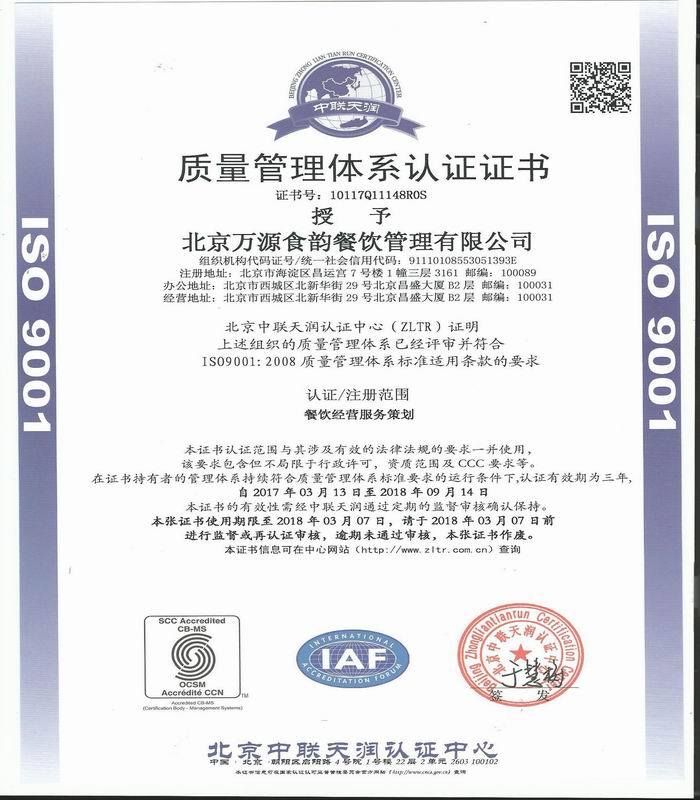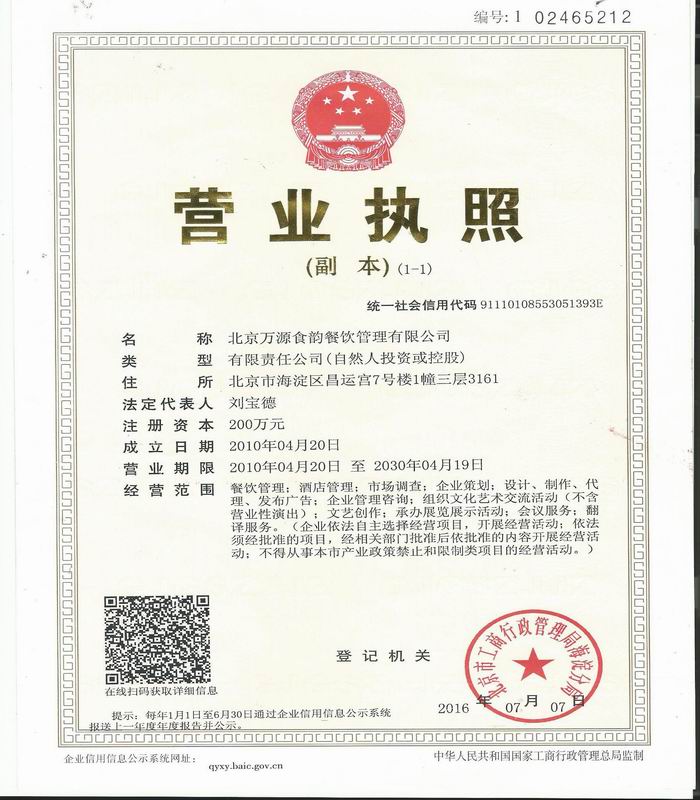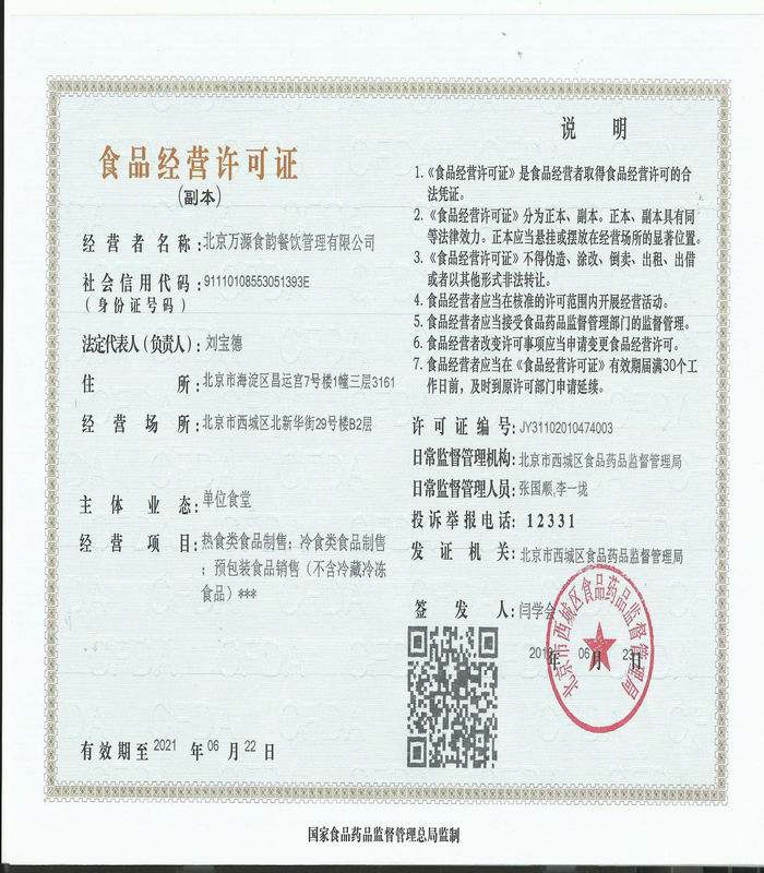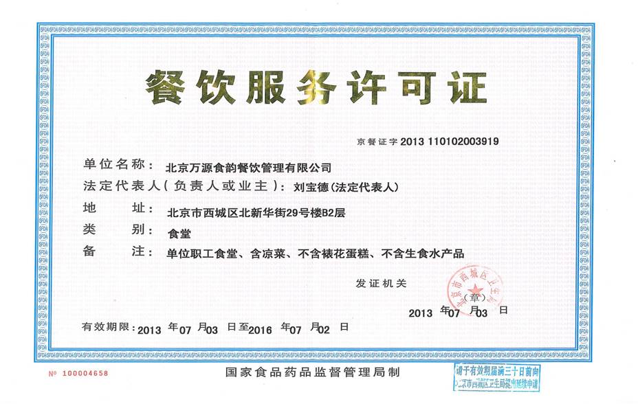 您现在的位置:北京万源食韵餐饮管理有限公司 > 企业资质